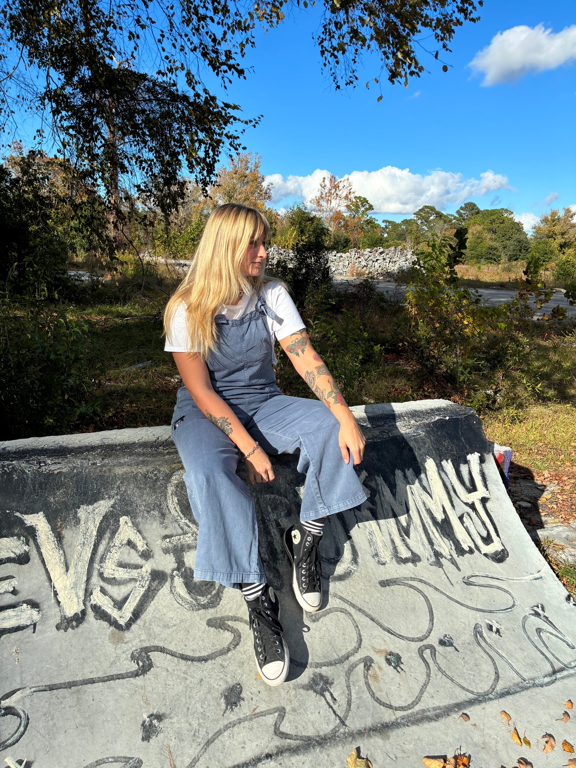 Super soft, baggy denim overalls in six rad colors.